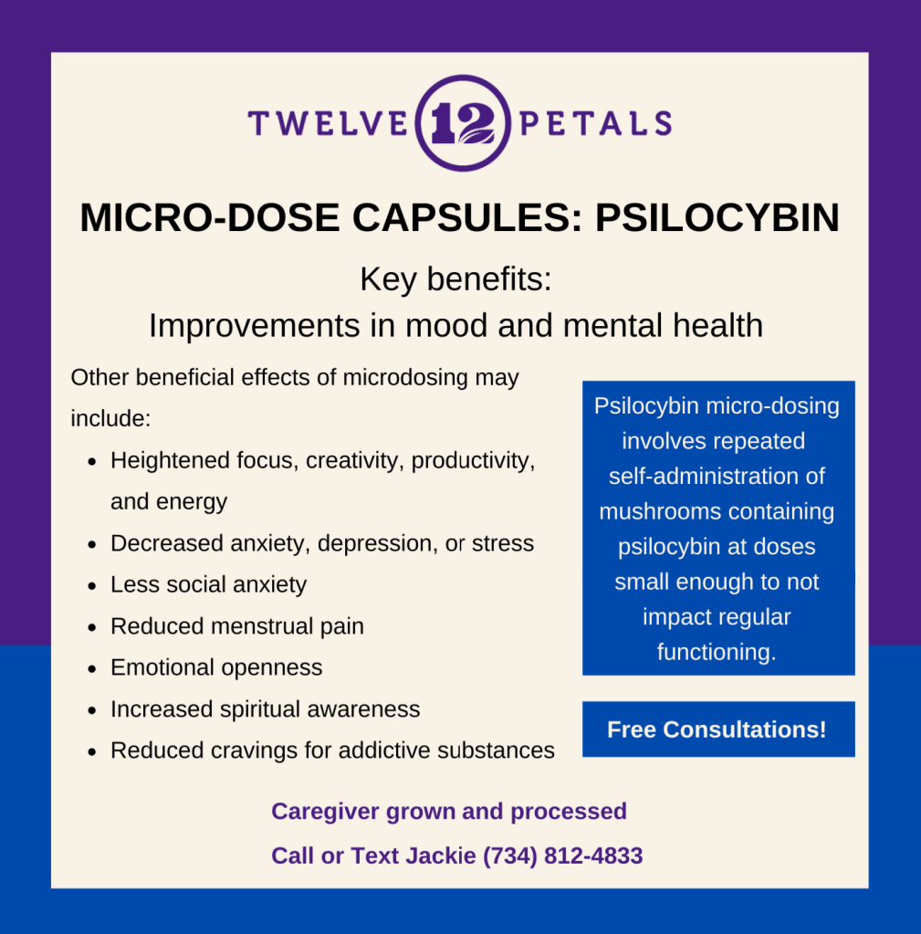 I offer custom blends using THC, CBD, and CBN in any ratio, as well as microdose psilocybin capsules for those seeking gentle, intentional support for mental clarity, creativity, or emotional resilience.